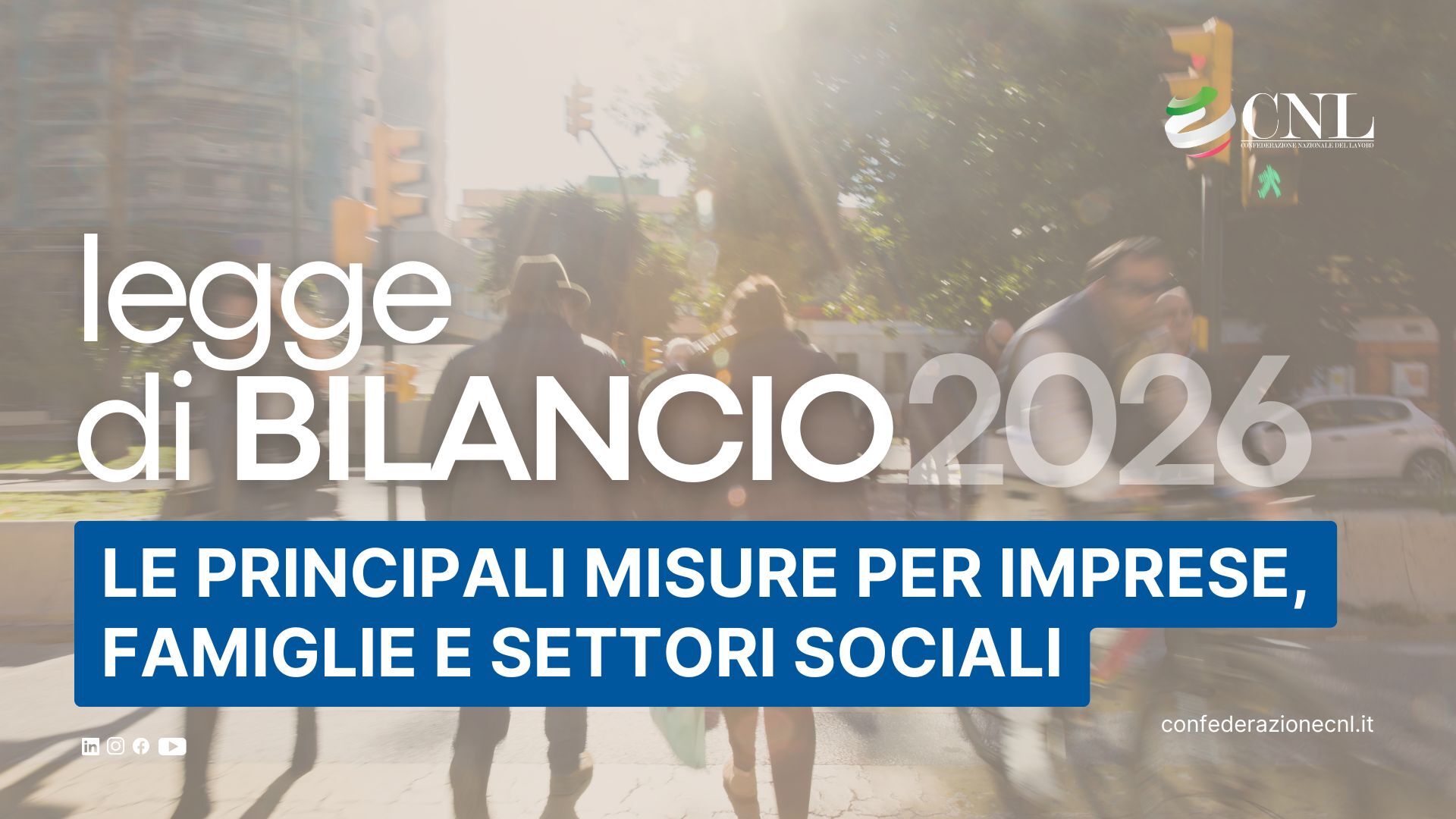 La CNL promuove la sicurezza nei luoghi di lavoroAttraverso l’organismo paritetico OPN ITALIA LAVORO la confederazione offre corsi di formazione in materia di sicurezza sul lavoro Contattaci Legge annuale PMI: sicurezza, formazione e smart working Leggi di più La sicurezza sul lavoro non può essere il prezzo dei grandi eventi Leggi di più Legge di Bilancio 2026: Le Principali Misure per imprese, famiglie e settori sociali Leggi di più IL Decreto Salute e Sicurezza sul Lavoro è stato convertito in legge Leggi di più Parità di genere, agevolazione contributiva INPS 2025 fino a 50.000 euro Leggi di più L’imprescindibilità della sicurezza all’interno delle scuole Leggi di più DL Sicurezza sul lavoro, ok del Senato: Inizia l’esame alla Camera Leggi di più Semplificazione procedure migratorie, la CNL tra le Associazioni Datoriali aderenti al nuovo Protocollo Leggi di più Bonus giovani imprenditori under 35: Il nuovo incentivo Inps da 500 euro al mese Leggi di più Il decreto flussi è legge: tante le novità introdotte Leggi di più = Innovazione e StartUp = Capitale umano e formazione = Credito e Finanziamenti = Opportunità e Strumenti = Consulenza e Gestione Aziendale C.C.N.L. sottoscritti Scopri di più → Convenzioni INPS Scopri di più → Mappa delle sedi C.N.L Scopri di più → Federazioni Scopri di più → Enti Bilaterali Scopri di più → Fondo Interprofessionale Scopri di più → Accreditamenti Scopri di più → Assistenza Sindacale Scopri di più → Altri servizi Scopri di più → Sicurezza nei luoghi di lavoro (D.Lgs. 81/08) Scopri di più → Certificazione delle professioni (L.4/13) Scopri di più → Certificazioni Sanità, Scuola, Professionali Scopri di più → Entra a far parte della Confederazione Nazionale del Lavoro! Iscrivi la tua azienda Partners: