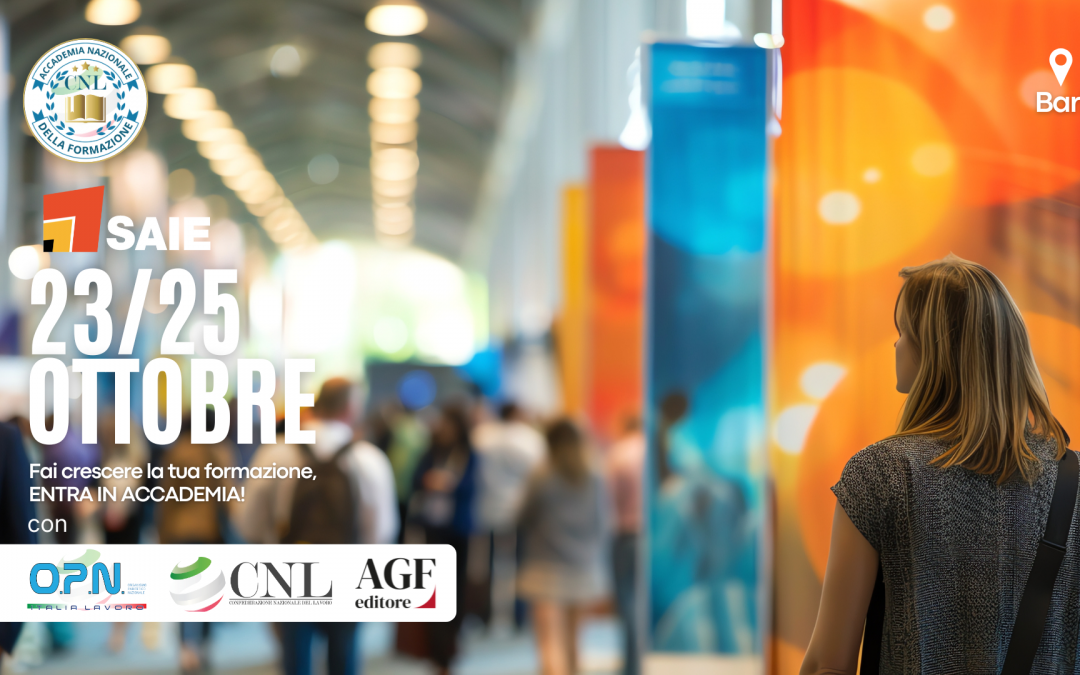 Siamo felici di annunciare che dal 23 al 25 ottobre 2025 l’Accademia Nazionale della Formazione CNL sarà protagonista alla Fiera SAIE Bari, uno degli eventi più importanti a livello nazionale dedicati al mondo delle costruzioni.